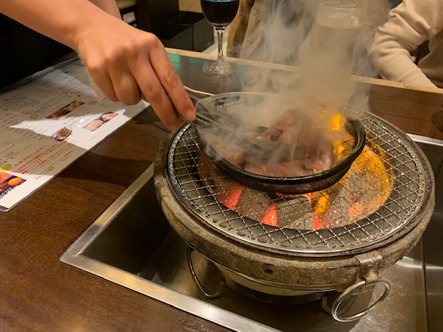 福岡市早良区の、中西商店街にある 「しちりん焼肉 わさび」。